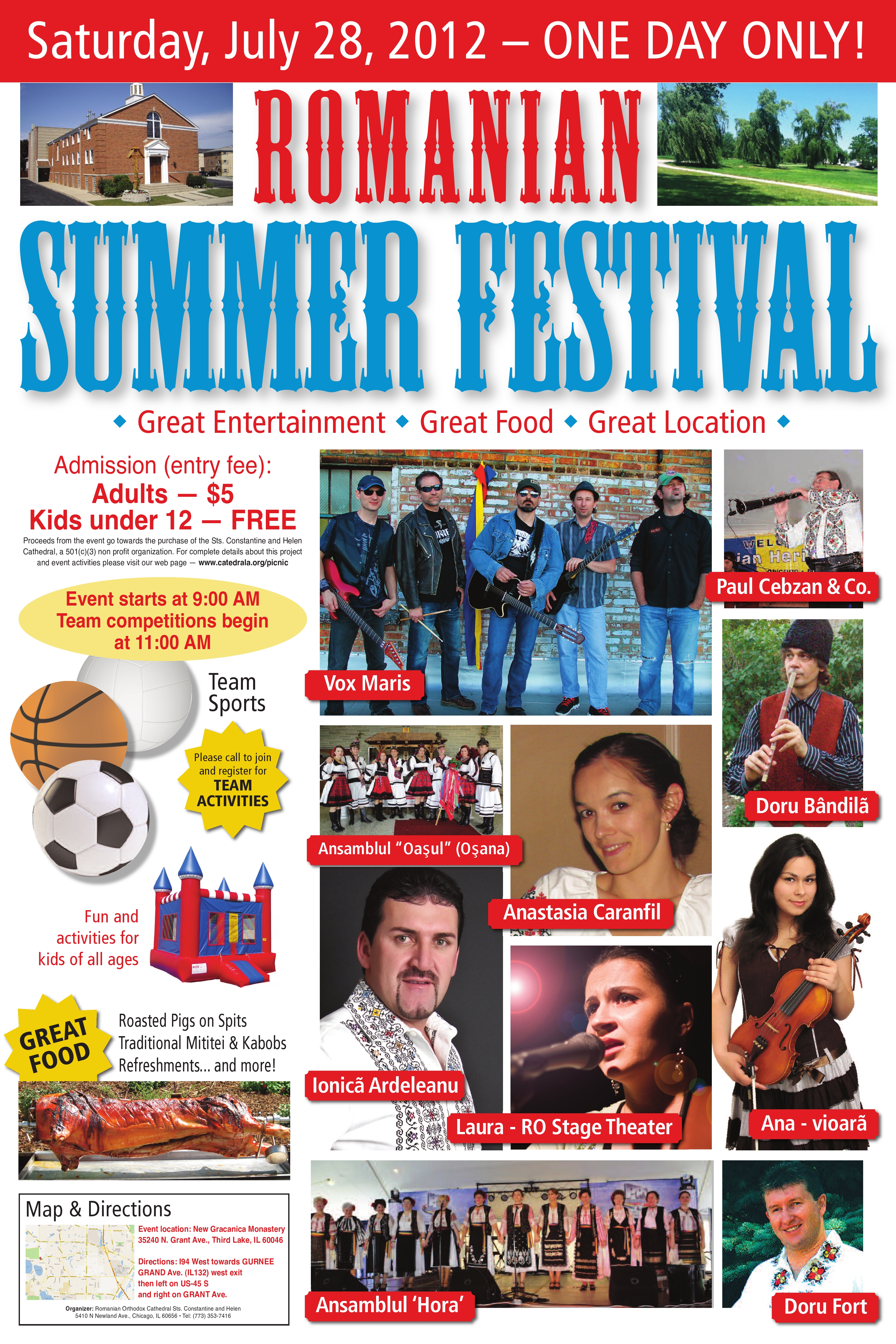 Petrecerea va avea loc pe proprietatea bisericii. Din delicioasele bucate nu vor lipsi mititeii si carnatii. Programul va include muzica si tombola. Pentru informaţii sunaţi la: Domnul Floricel Ciocoi, telefon: 773-447-1311 sau Domnul Emanuel Matula, telefon :773-251-0485.
