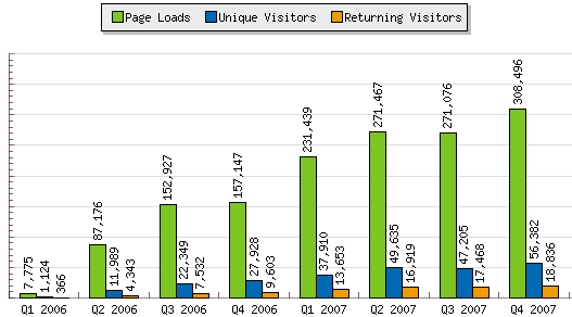 Portalul Romanilor din Chicago (Romanians in Chicago) include anunturi gratuite, joburi, imobiliare, vanzari, cumparari, inchirieri, informatii utile, evenimente din comunitatea romaneasca din Chicago. Site-ul cuprinde si un web organizat pe tipuri de afaceri: agentii imobiliare si de credite, turism, asigurari, audio-video, auto, avocati, contabili, traducatori, doctori, constructii, restaurante, media, publicitate, web design, transporturi etc.Grafic 1. Numar utilizatori si page hits, Ian 2008